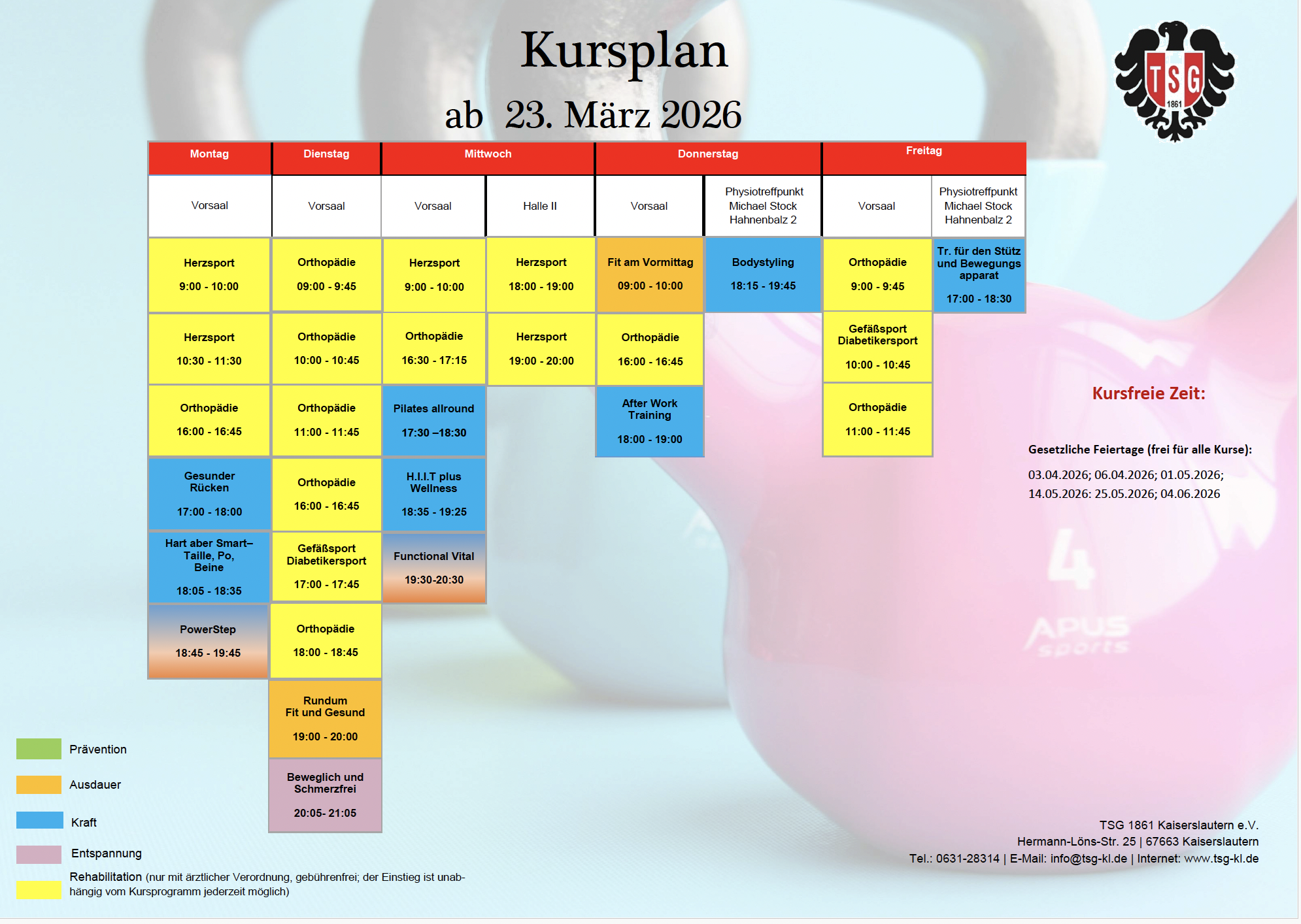 Ab sofort kannst du dich für unser neues TSG Januar-Kursprogramm anmelden! Wir bieten dir wieder vielseitige Kurse an und freuen uns über deine Teilnahme bzw. Interesse.